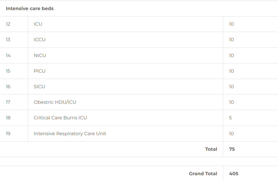 - Each department is allocated a specific number of beds to cater to patient needs and academic training.